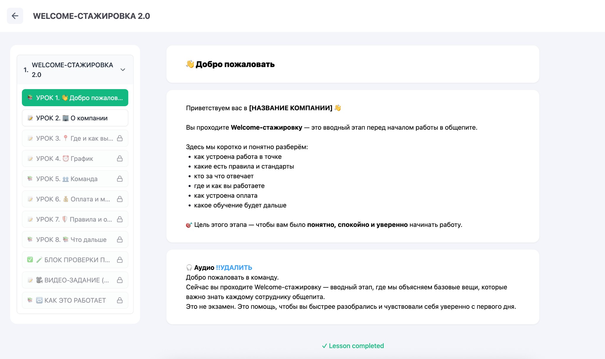 - Обучение стандартам сервиса до выхода на смену